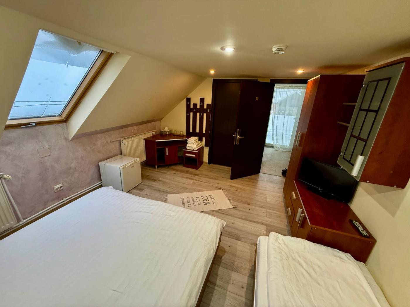 Triple Room - Attic. Offering free toiletries, this triple room includes a private bathroom with a bath and a shower. The triple room has parquet floors, a seating area with a flat-screen TV with cable channels, air conditioning, a private entrance, as well as a minibar. The unit has 2 beds. ;
